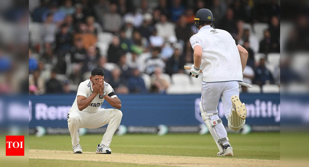 LEEDS, ENGLAND – JUNE 24: Mohammed Siraj of India looks on as Zak Crawley and Ben Duckett of England add…
