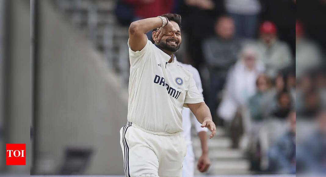 India’s Rishabh Pant celebrates after scoring a century on day four of the first cricket test match between England and…