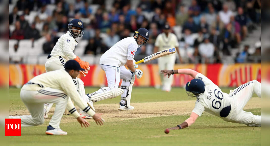 Joe Root of England hits past India slip fielder Sai Sudharsan (Photo by Gareth Copley/Getty Images) Shubman Gill’s first outing…