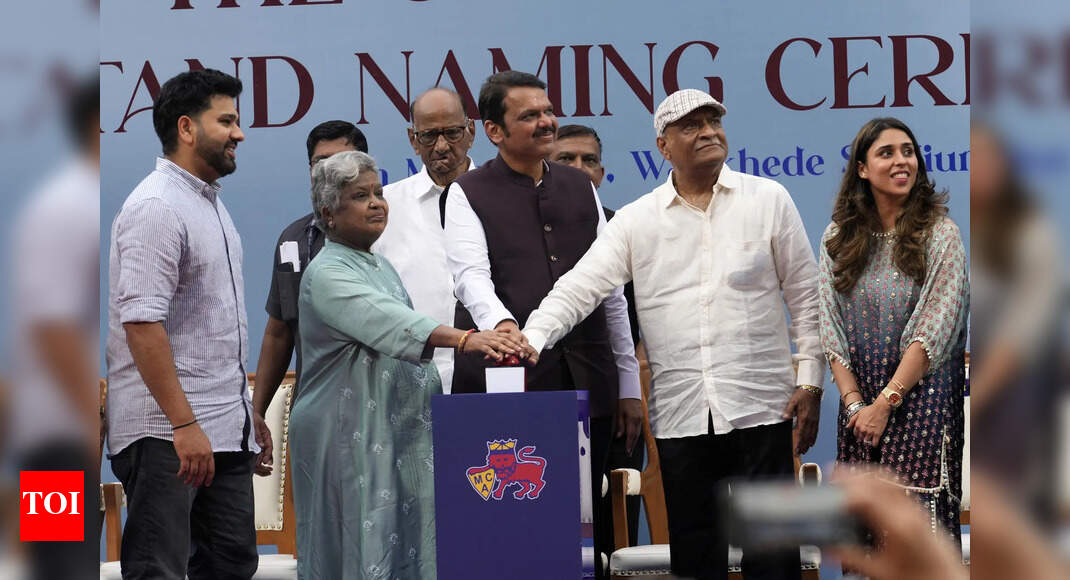 Rohit Sharma, left, his mother Purnima Sharma, second left, former International Cricket Council chairman Sharad Pawar, third left, Chief Minister…