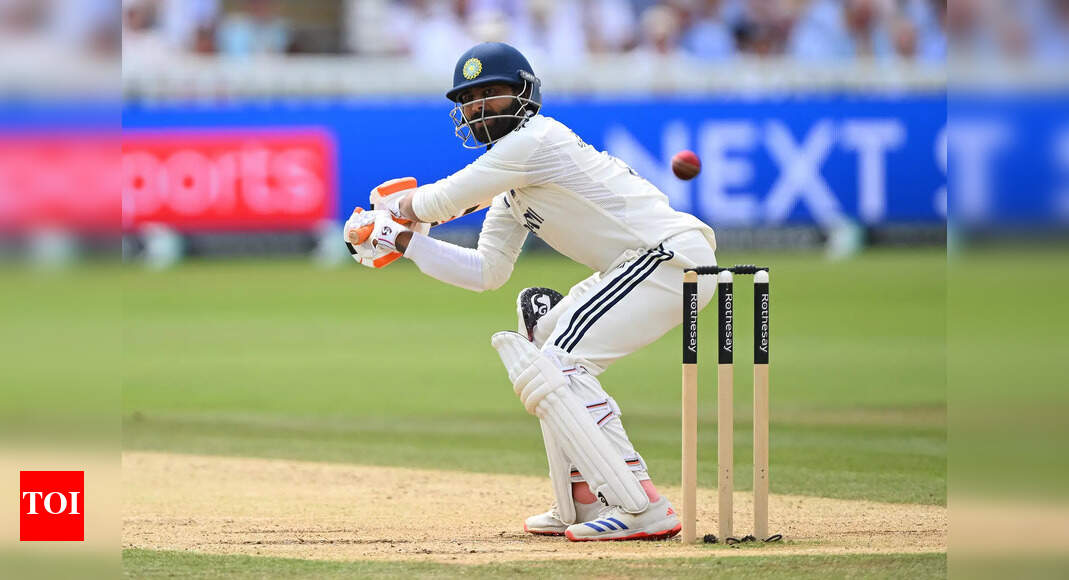 London: India’s batter Ravindra Jadeja plays a shot during the third day of the third Test match between India and…