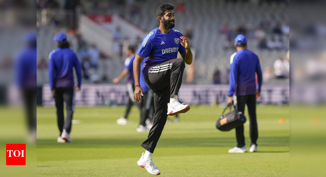 Manchester: India’s Jasprit Bumrah warms up before the start of play on day three of the fourth test cricket match…