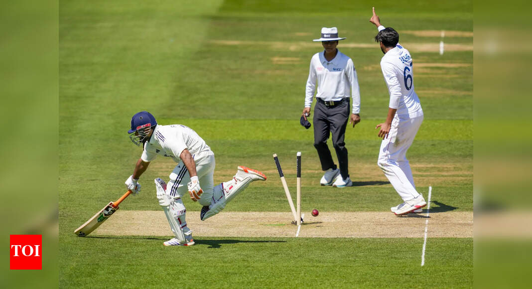 London: India’s batter Rishabh Pant tries to reach the crease during the third day of the third Test match between…