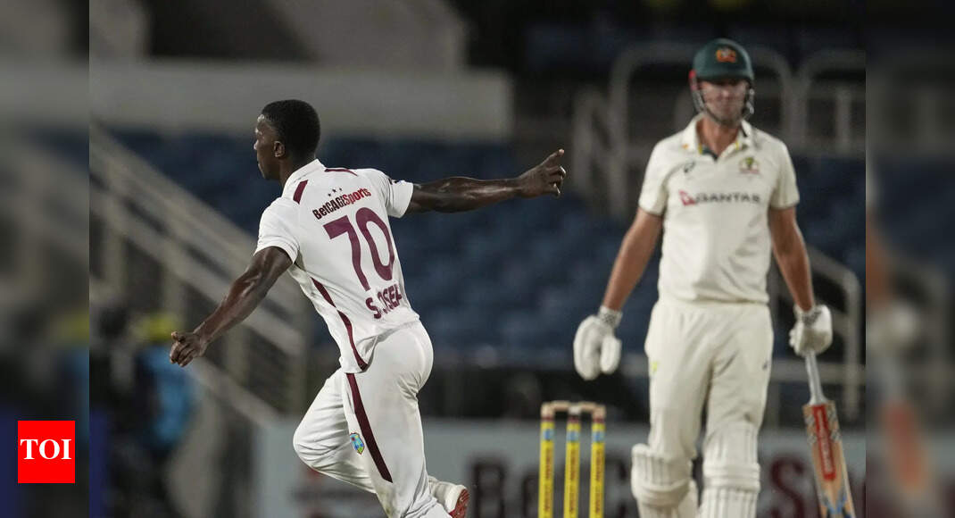 West Indies’ Shamar Joseph celebrates the wicket of Australia’s Beau Webster(AP Photo/Ricardo Mazalan) The West Indies dominated Australia on day…