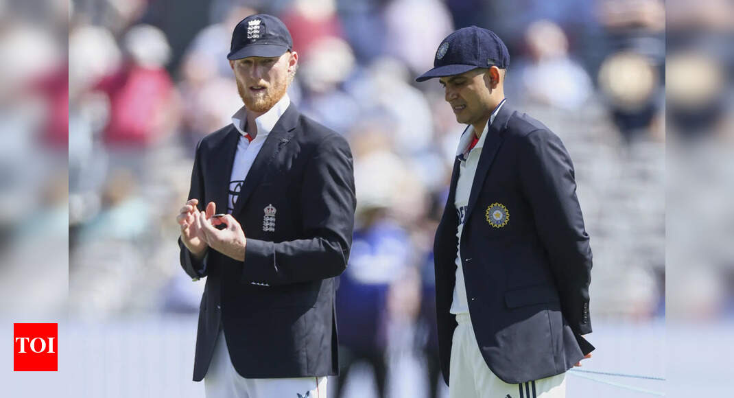 England’s captain Ben Stokes and India’s captain Shubman Gill wait for the coin toss before the start of the third…