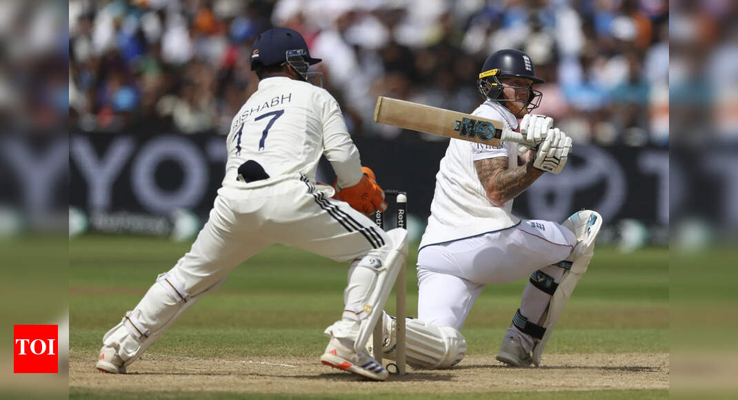 England captain Ben Stokes bats on day five of the second cricket test match between England and India at Edgbaston…