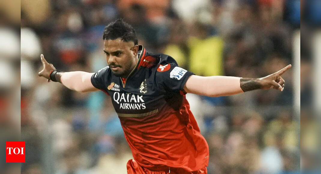 Mumbai: Royal Challengers Bengaluru’s Yash Dayal celebrates the dismissal of Mumbai Indians’ Rohit Sharma during an Indian Premier League (IPL)…
