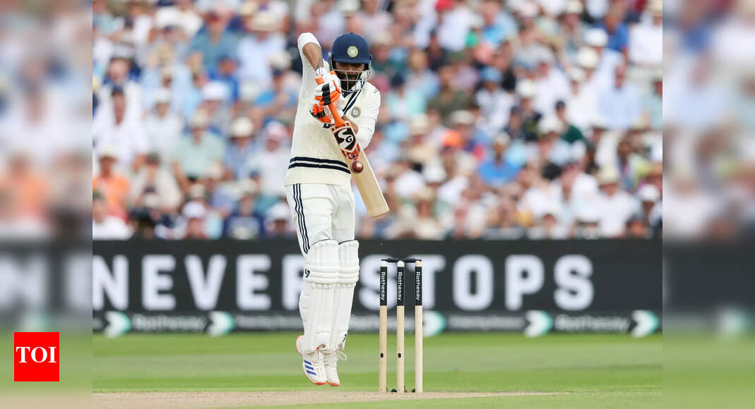 India’s Ravindra Jadeja plays a shot during Day 2 of the 2nd Test match against England at Edgbaston. (Images: @BCCI…