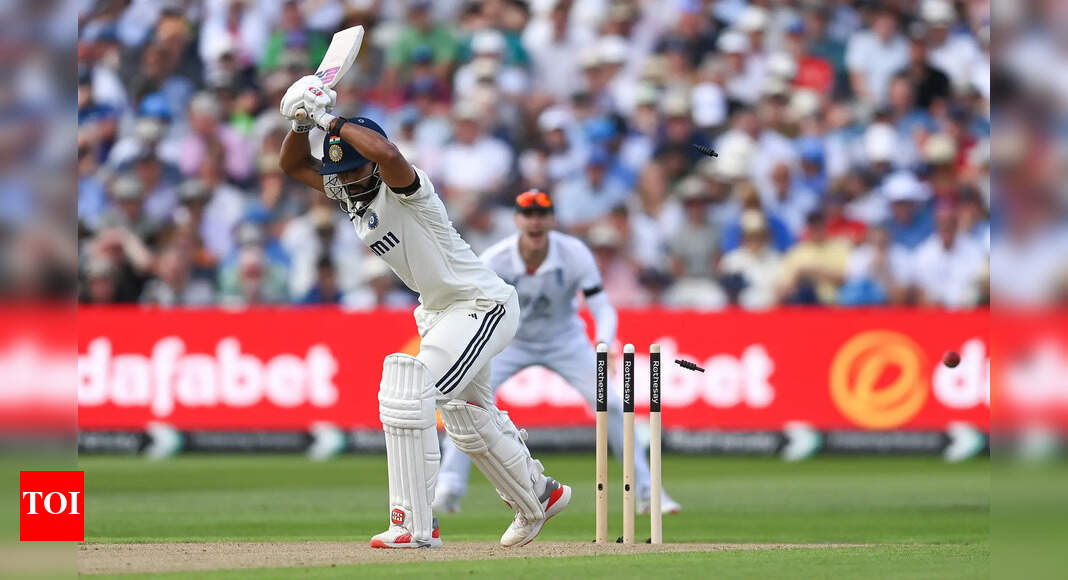 Nitish Kumar Reddy of India is bowled by Chris Woakes of England (Photo by Gareth Copley/Getty Images) On a testing…
