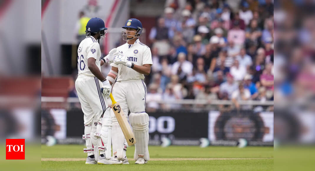 Manchester: India’s Yashasvi Jaiswal celebrates his half century with Sai Sudharsan on day one of the fourth test cricket match…