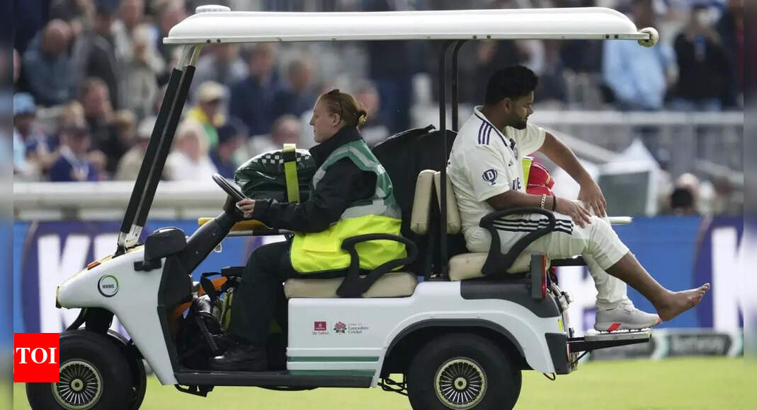 Rishabh Pant was taken off on a golf cart after sustaining a foot injury in Manchester. (AP Photo) India’s hopes…