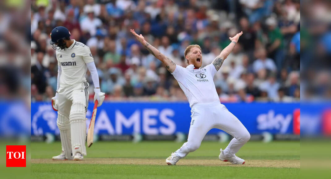 Ben Stokes appeals successfully for the wicket of Shubman Gill during Day One of the 4th Test at Old Trafford…