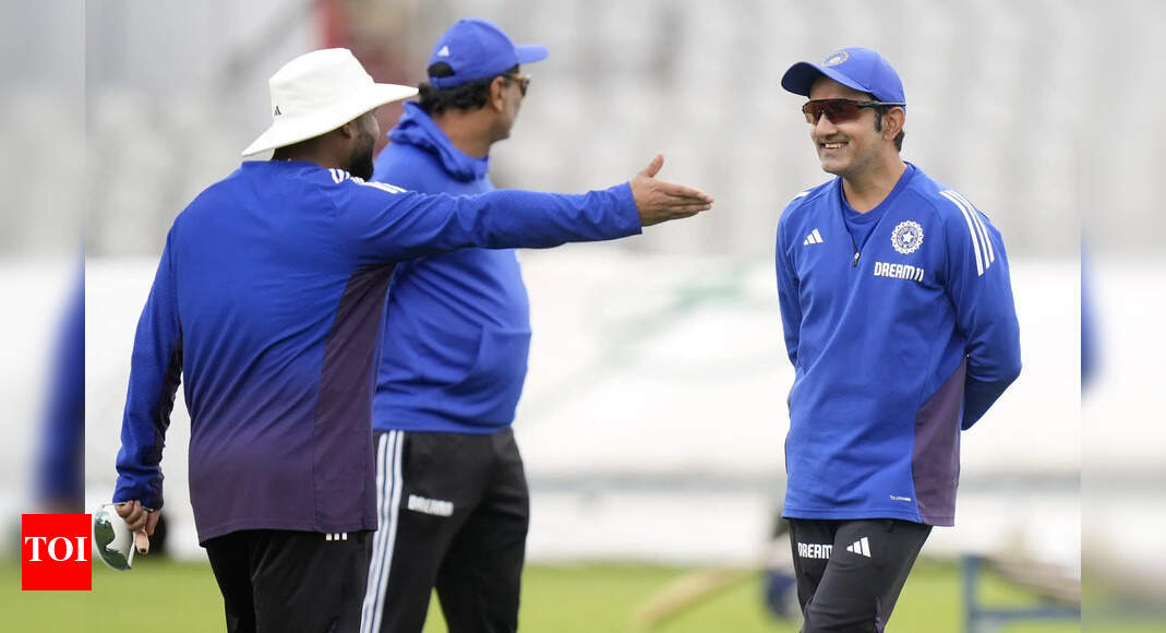 Indian cricket team head coach Gautam Gambhir and captain Shubman Gill ahead of the fourth Test against England at Old…