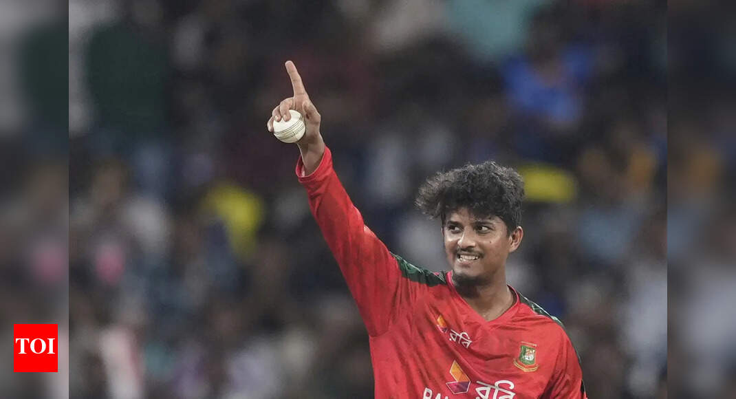 Mahedi Hasan celebrates the wicket of Pathum Nissanka during the third T20 between Sri Lanka and Bangladesh in Colombo. (AP)…