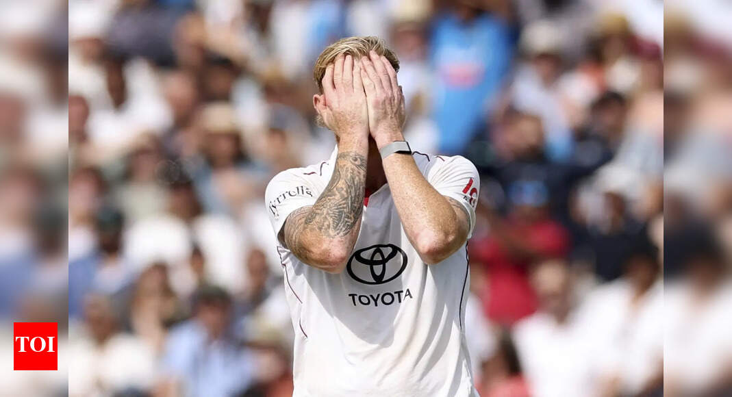 England’s captain Ben Stokes reacts during the fifth day of the third cricket test match between England and India at…