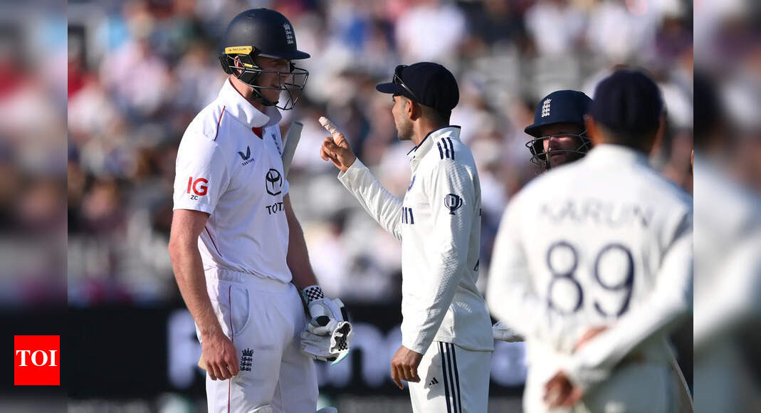 LONDON, ENGLAND – JULY 12: England batsman Zak Crawley and India captain Shubman Gill exchange words after Crawley called for…