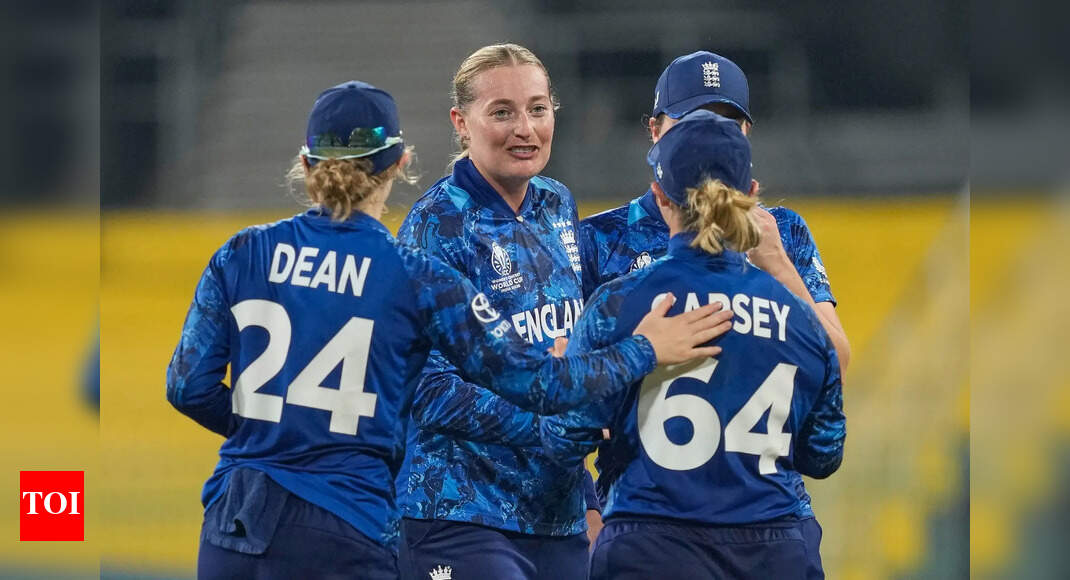 England’s Sophie Ecclestone celebrates the wicket of Sri Lanka’s Hasini Perera (AP Photo/Eranga Jayawardena) England captain Nat Sciver-Brunt scored her…