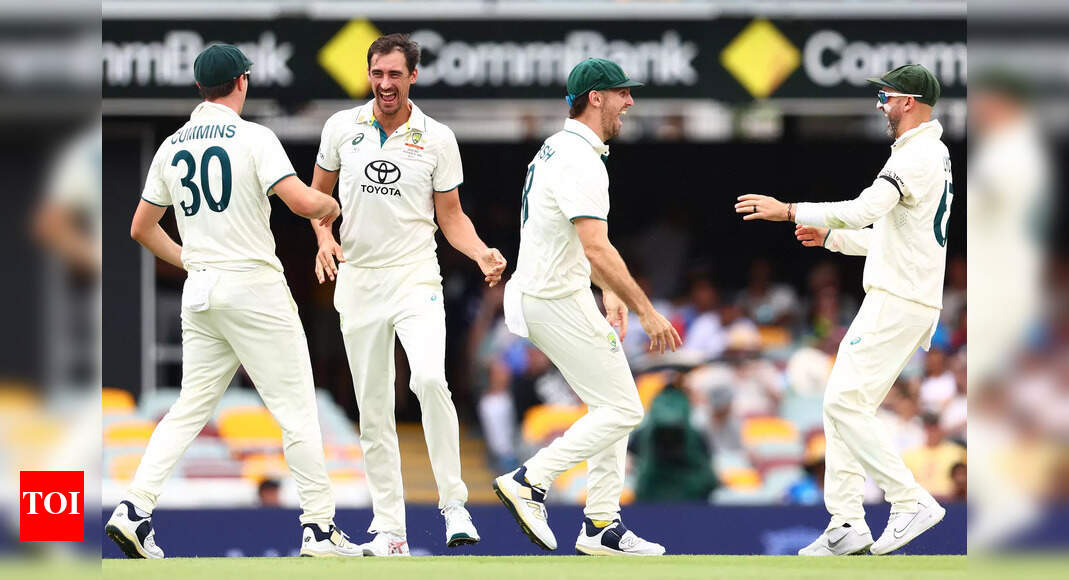 Mitchell Starc of Australia celebrates with Pat Cummins (Photo by Chris Hyde/Getty Images) Australian cricket captain Pat Cummins, currently recovering…