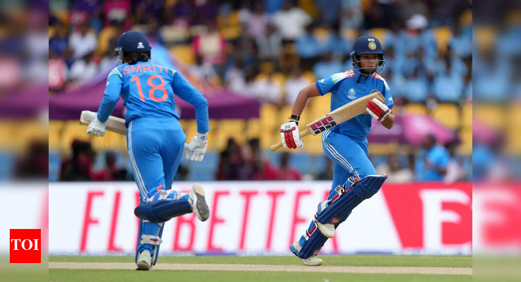 Pratika Rawal of India (R) runs between the wickets with team mate Smriti Mandhana. (Getty Images) VISAKHAPATNAM: Indian batters were…
