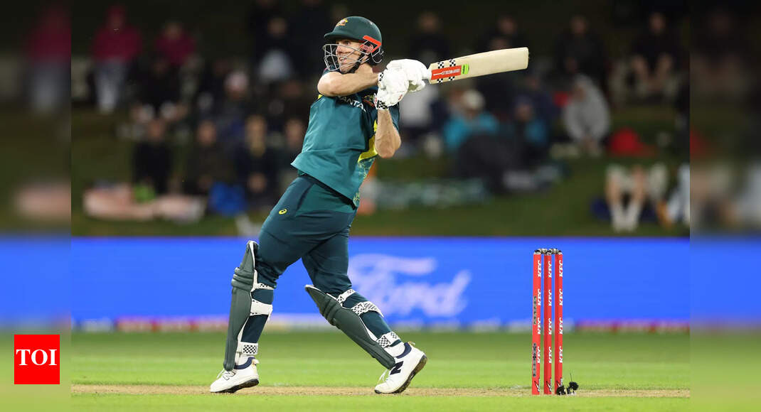 Mitchell Marsh’s maiden T20I century saved the day for Australia in the 3rd T20 against New Zealand (Photo by Phil…
