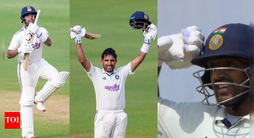 Dhruv Jurel celebrating his century on day two of the first Test. (PTI Photo) As the sun dipped low over…