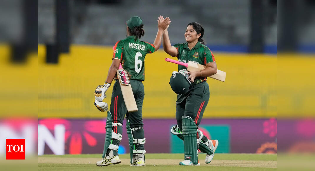 Bangladesh’s Rubya Haider, right, and Sobhana Mostary celebrate their win. (AP/PTI Photo) NEW DELHI: Bangladesh produced a commanding performance to…