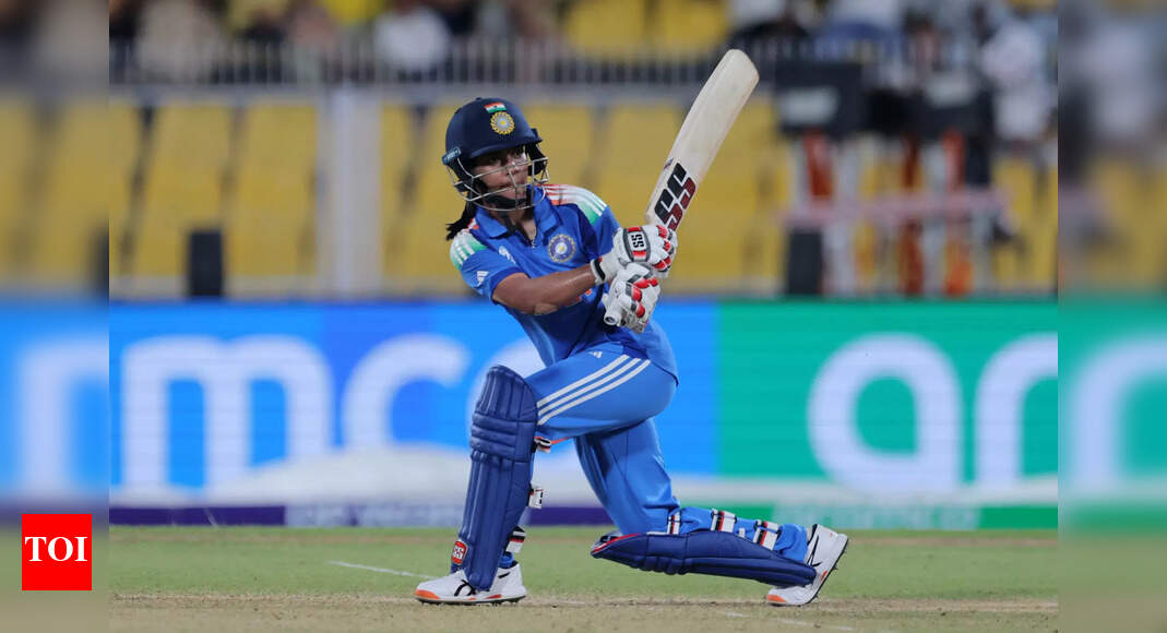 GUWAHATI, INDIA – SEPTEMBER 30: Amanjot Kaur of India hits out during the ICC Women’s Cricket World Cup India 2025…