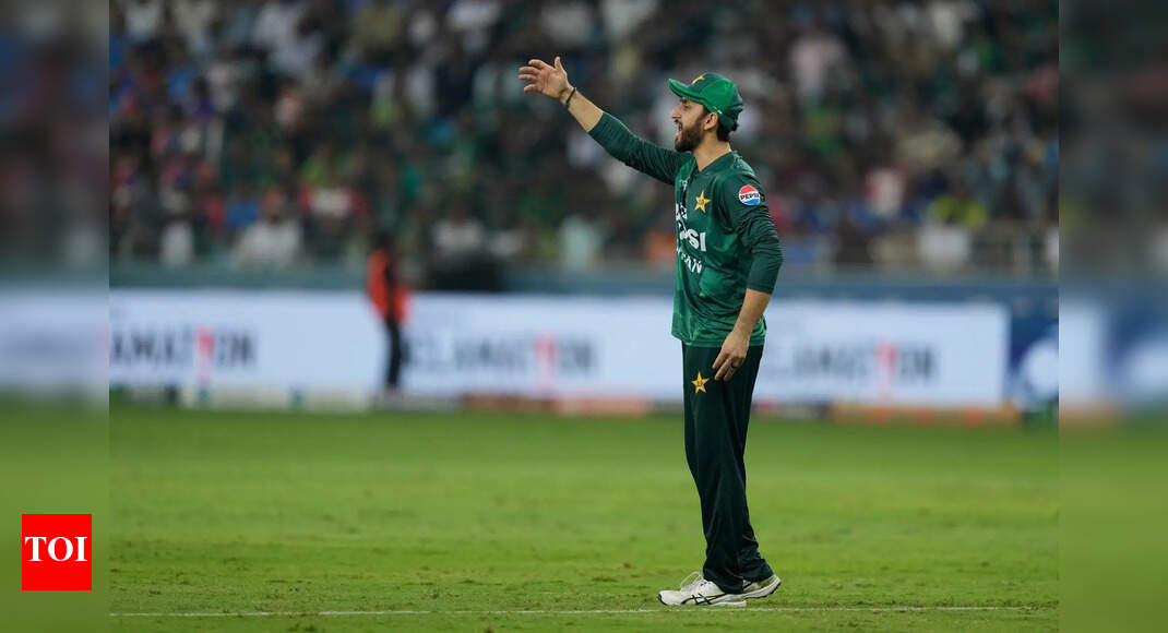 Pakistan’s captain Salman Agha sets the field during the Asia Cup cricket final between India and Pakistan at Dubai International…