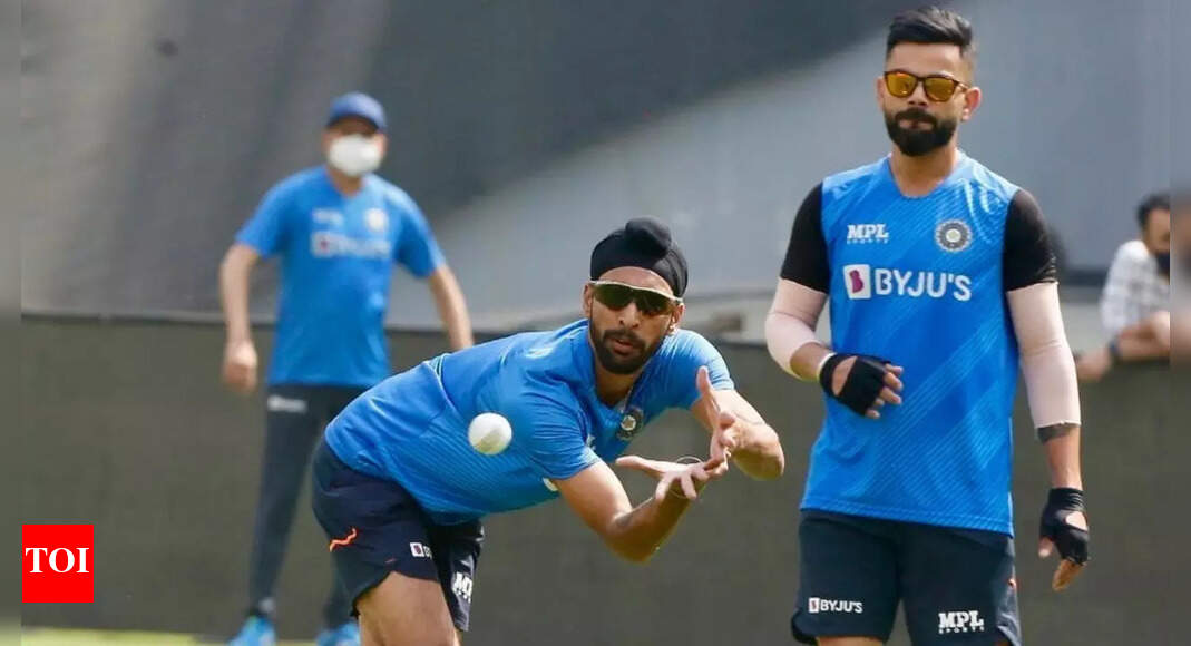 File photo of Punjab bowler Harpreet Brar during a nets session with Virat Kohli in the background. (Instagram) NEW DELHI:…