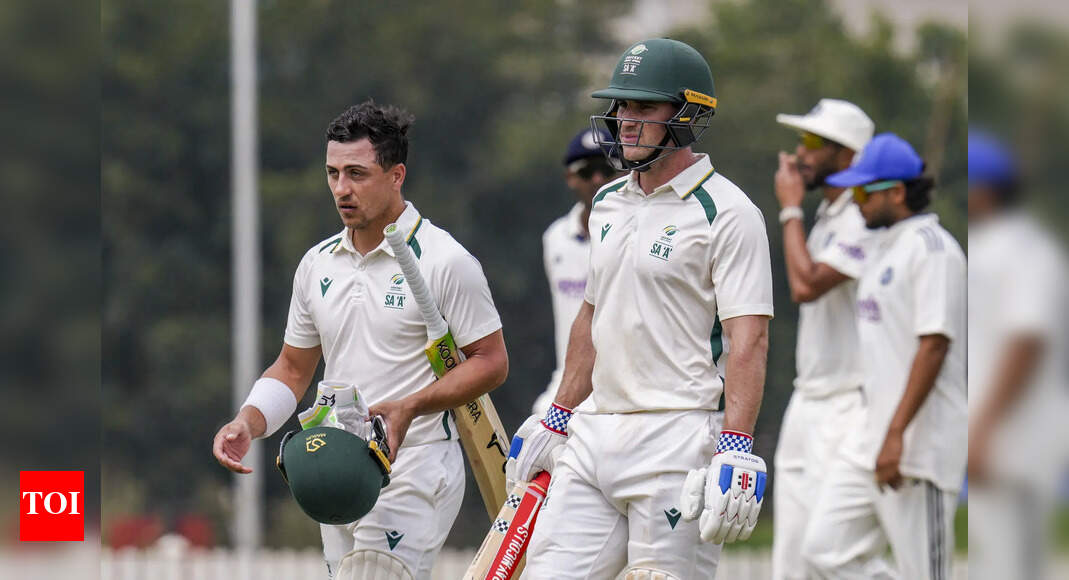 South Africa A’s Jordan Hermann and Marques Ackerman walk back to the pavilion. (PTI Photo) BENGALURU: Much like the aircraft…