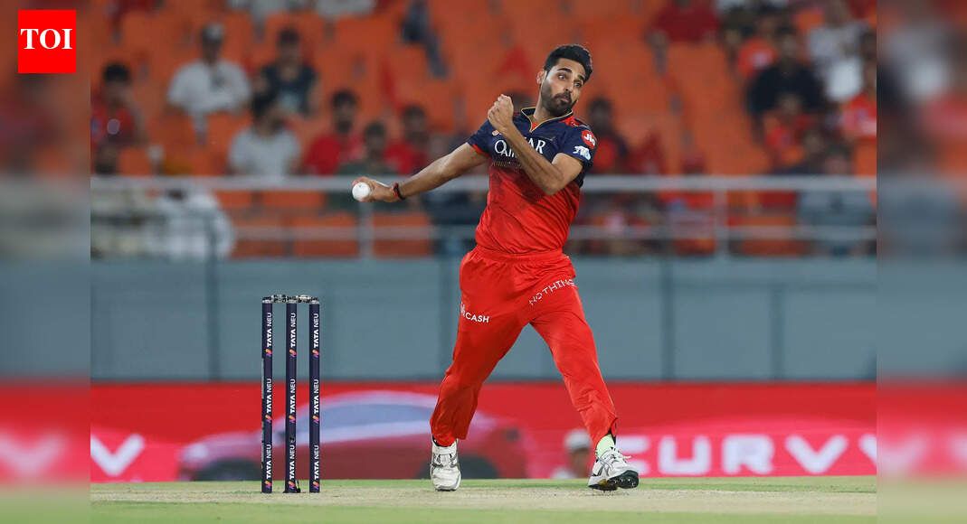 CHANDIGARH, INDIA – MAY 29: Bhuvneshwar Kumar of Royal Challengers Bengaluru bowls during the 2025 IPL Qualifier Finals match between…