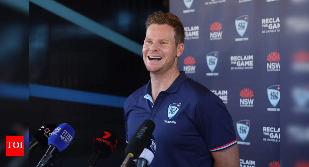 SYDNEY, AUSTRALIA – OCTOBER 21: Steve Smith speaks to the media at Cricket Central on October 21, 2025 in Sydney,…