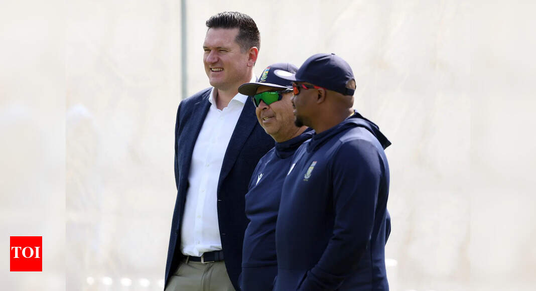 Graeme Smith, former South African international talks to Shukri Conrad, Head Coach of South Africa during a nets session at…