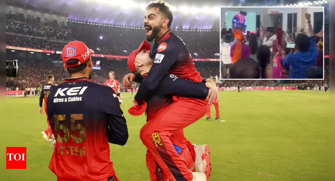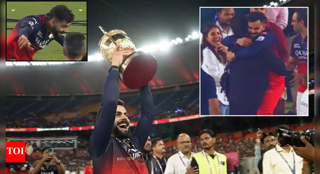 Virat Kohli holding the IPL trophy celebrates with RCB fans. (Video grab) NEW DELHI: Virat Kohli’s 18-year wait for Indian…