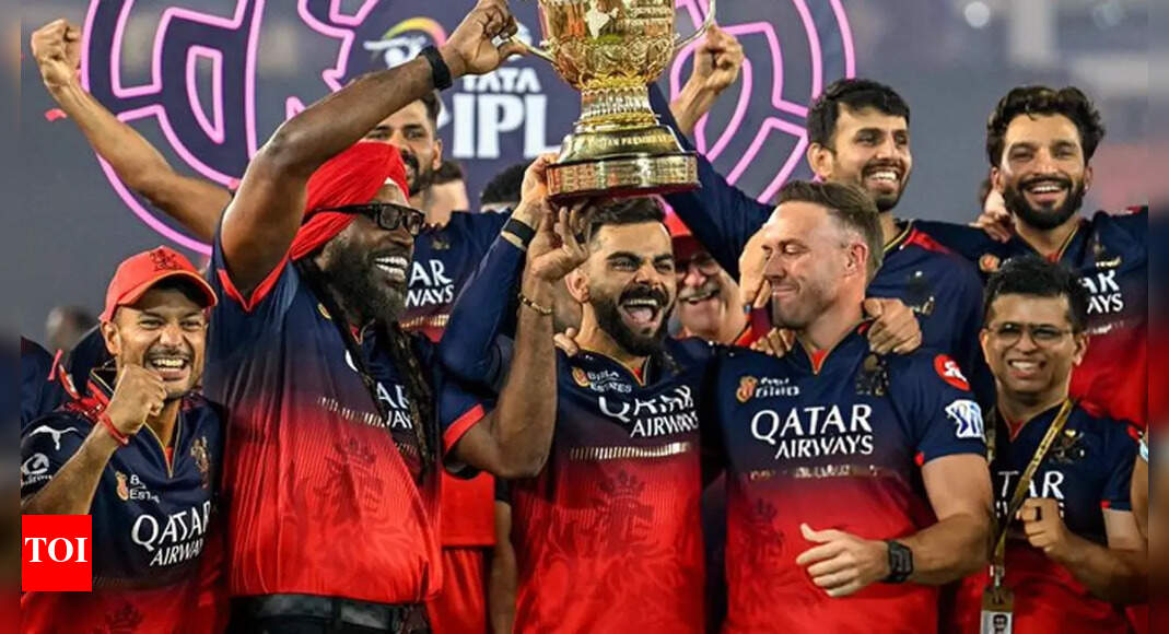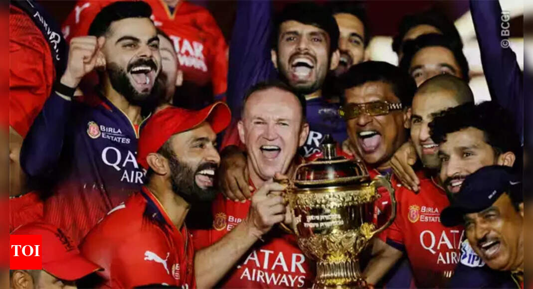 Andy Flower holds the trophy as RCB celebrate historic IPL win. (Pic credit: IPL) TimesofIndia.com in Ahmedabad: Royal Challengers Bengaluru…