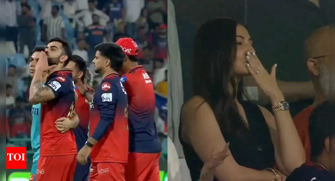 Virat Kohli and Anushka Sharma sent flying kisses each other’s way after RCB’s win over LSG in IPL 2025. (Image:…