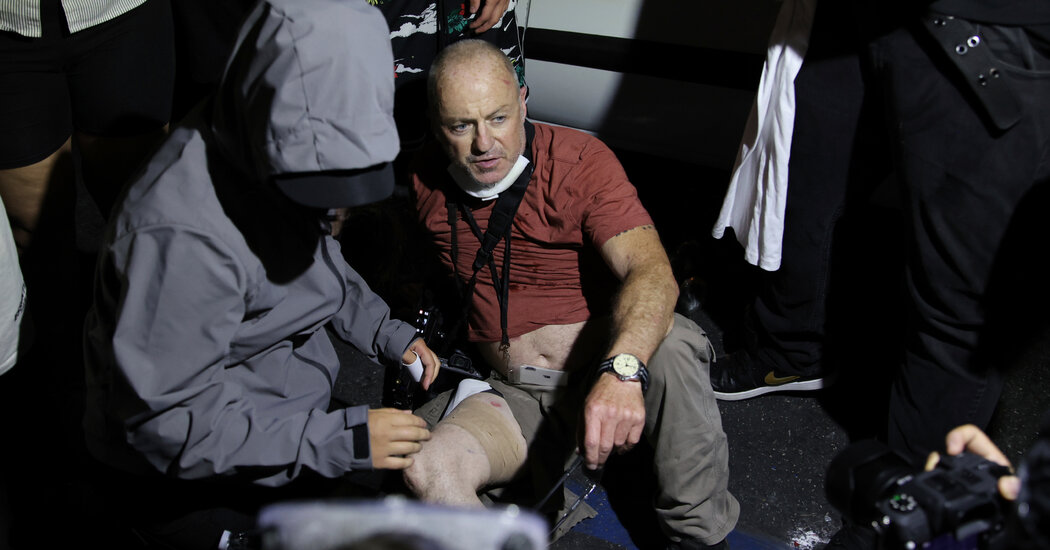 Nick Stern had moved into position to take a photograph of a group of people waving Mexican flags near a…